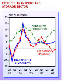THE TRANSPORT AND STORAGE sector grew 5.5% in 2Q07, up from 4.3% a