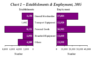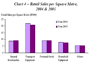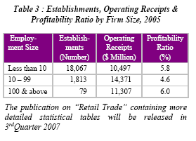 of the overall retail trade was 5.4 per cent in 2005, similar to the