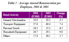 $24,600 for overall retail trade in 2005. Average remuneration was