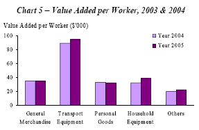 added per worker at $94,600 in 2005, compared to $22,300 to $38,600