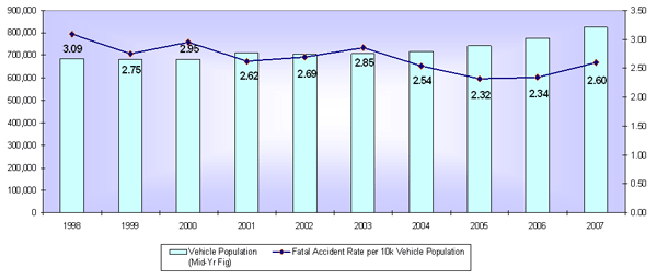rate per 10,000 vehicle population has increased from 2.34 in 2006 to
