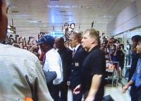 The Manchester United football team arrived at Changi Airport yesterday at about 10.25am on flight M 603. They will play against Team Singapore tonight at 8pm at the National Stadium. This is their second visit here; the first was in 1986.