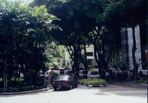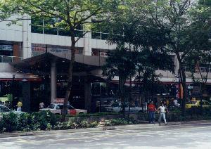 Another view of the entrance to Lucky Plaza across the