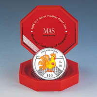 The first Singapore Almanac Coin in colour. The rooster featured on this
