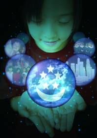 in the floating balls. The serene feeling the little girl