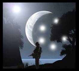 digital effect of a cresent moon and 5 stars represents our