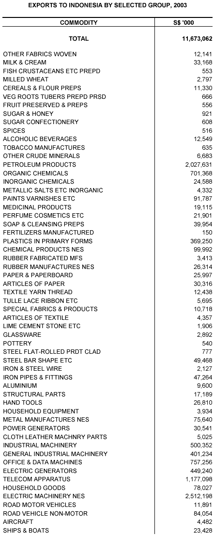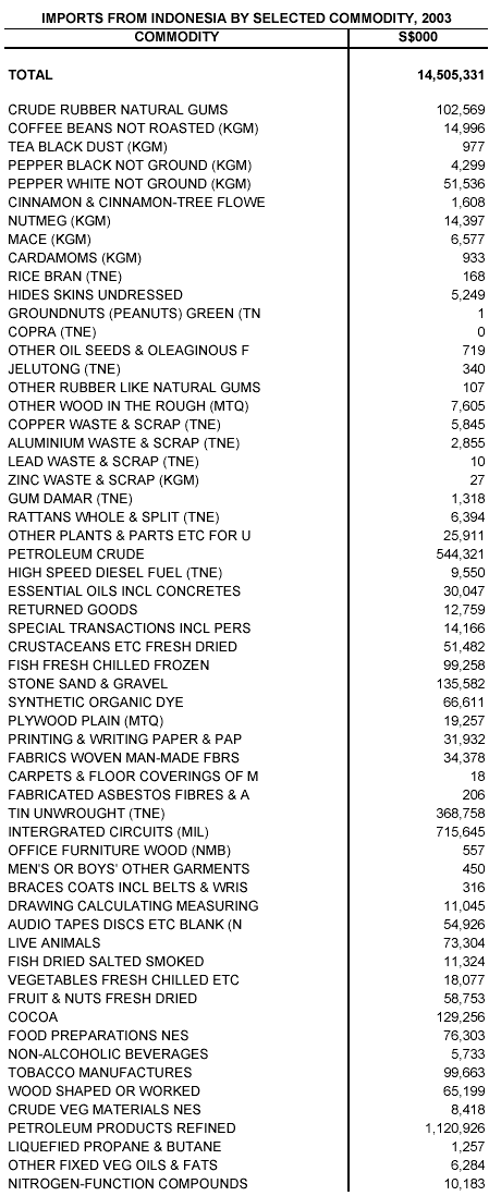Singapore's External Trade with Indonesia for 2003