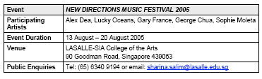 festival artist Gary France and guests from LASALLE-SIA*s Music programme.