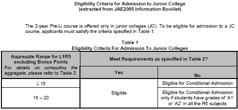 Direct Admission Exercise 2005 for JC1