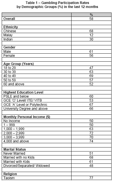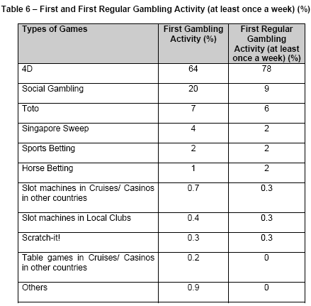 (91%), Toto (70%) and social gambling (65%).