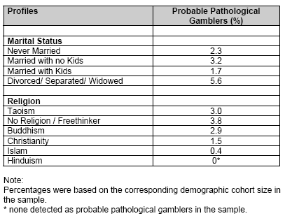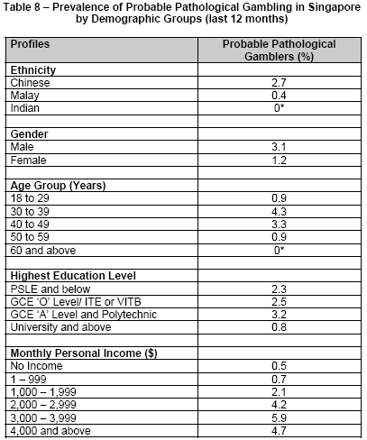 gambling was found among (See Table 8 in Appendix 2):