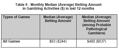 monthly betting amount among all gamblers was much lower, at $83.