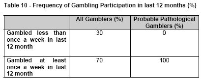 week in the last 12 months, whereas 30% of all gamblers gambled