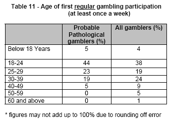 gamblers started gambling regularly (at least once a week) from