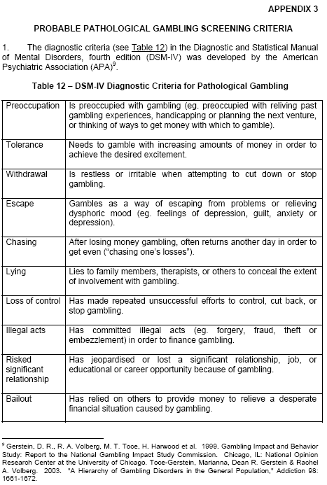 for problem and pathological gambling were further refined with