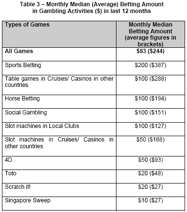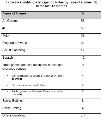 activities, lotteries - 4D (53%), Toto (39%) and Singapore Sweep