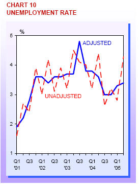 Total employment rose by 27,700 in 2Q05, larger than the 17,800