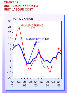 cost index (UBC) of manufacturing crept up 0.7% in 2Q05. This was