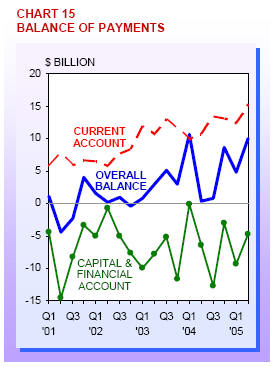 larger surplus of $15.3 billion in 2Q05, largely due to an increase