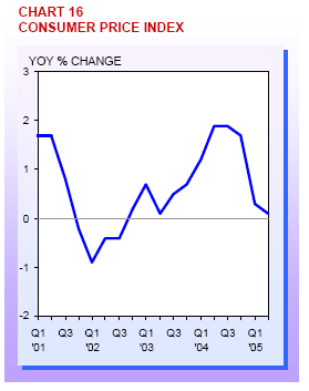 The CPI rose by 0.1% in 2Q05, easing from 0.3% in the earlier