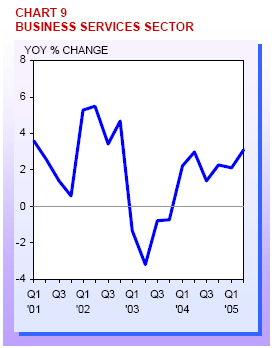 The Business Services Sector grew by 3.1% in 2Q05, a pick-up from