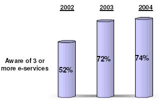 with the overall quality of e-services. In 2004, 81% gave 4 and