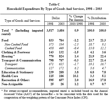 among all households (Table D in Annex). In 2003, some 83 per cent