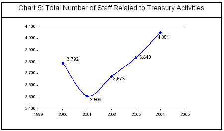 in the industry, the number of treasury staff also rose by 5.5%,