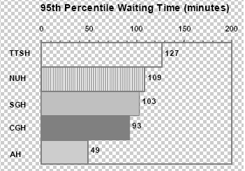 95% of the patients sampled waited this long or less, 5%