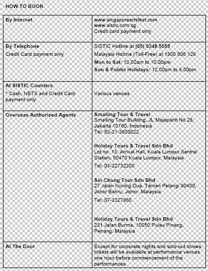 ticket prices for the following productions at SISTIC
