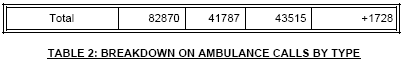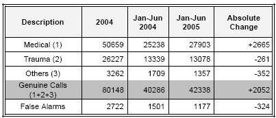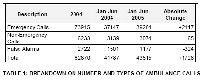 Emergency ambulance statistics for 1st half 2005