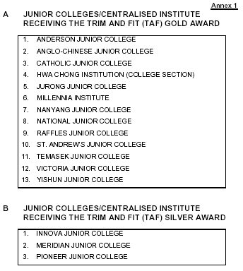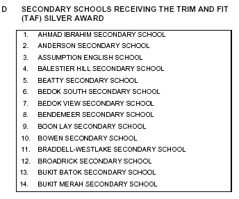TAF & Mindef Physical Fitness Awards for Schools 2005