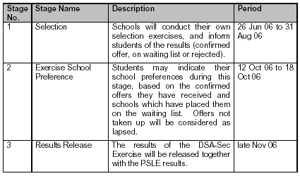 Exercise School Preference Stage (12 Oct 06 to