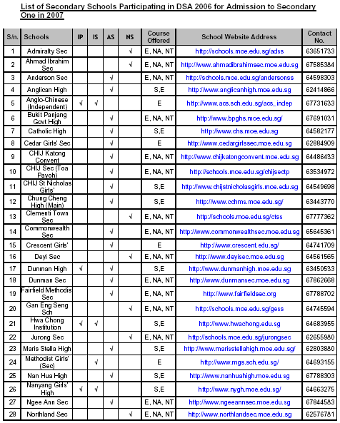 Admission to Secondary One in 2007