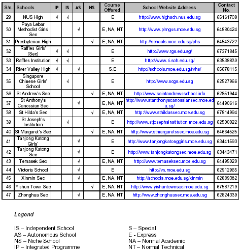 offered by the school [Special / Express / Normal (Academic) /