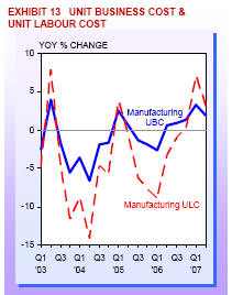 Overall unit labour cost (ULC) rose 5.7% in 2Q07, following a 5.9%