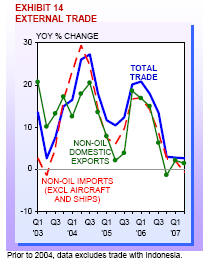 External trade expanded by 2.6% in 2Q07, slightly lower than the