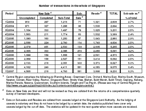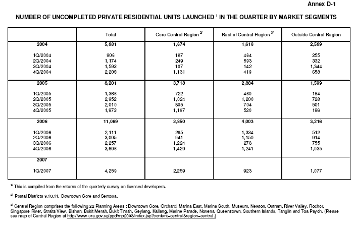 Source: www.ura.gov.sg News Release 27 Apr 2007