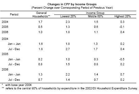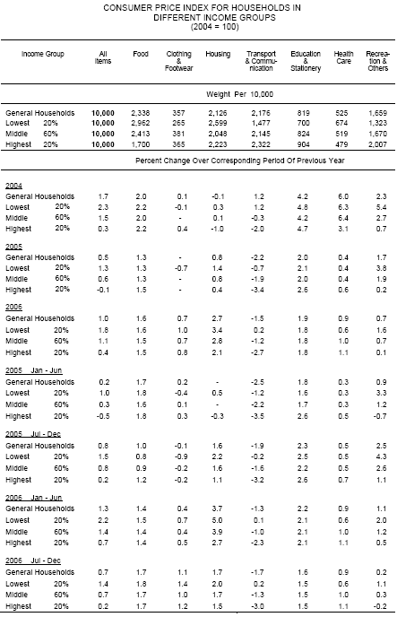 Consumer Price Index for general households in year 2006