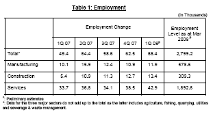 EMPLOYMENT SITUATION IN FIRST QUARTER 2008: |