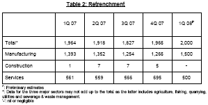 were retrenched in the first quarter of 2008. This is about the same as