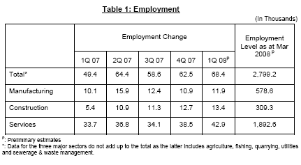 Employment situation in 1st qtr 2008