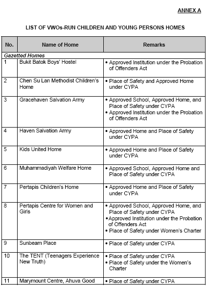 Annex A: List of voluntary-run CYP Homes in Singapore