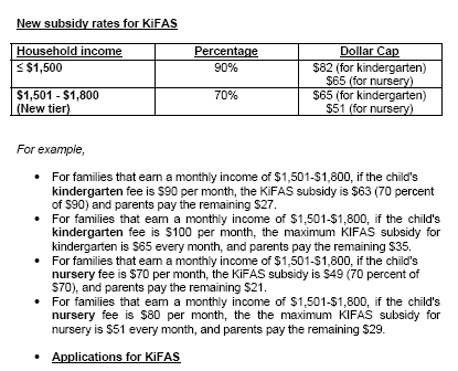 Kindergarten Financial Assistance Scheme (KiFAS). On top of this,