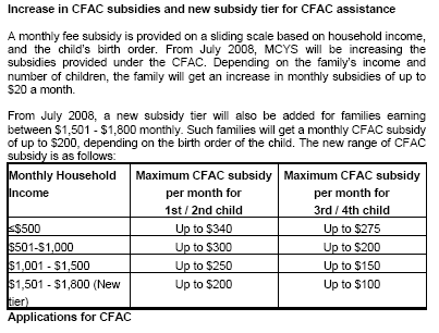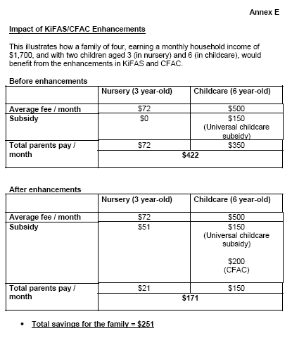 under the KiFAS and CFAC schemes for families earning between $1,501