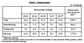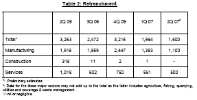 EMPLOYMENT SITUATION IN SECOND QUARTER 2007: |
